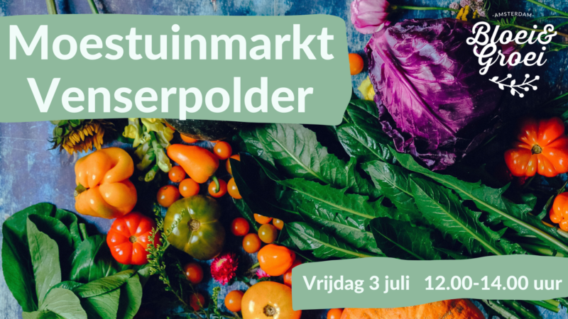 Bloei & Groei Venserpolder Albert Camuslaan 38, AmsterdamWelkom op onze moestuinmarkt in Venserpolder! Vrijdag 5 juni is de moestuinmarkt tussen 12:00 en 14:00 uur. Met o.a. snijbiet, meerjarige broccoli, knoflook, amsoi, munt, salie en selderij. De vrouwen van Venserpolder verbouwen en verkopen...