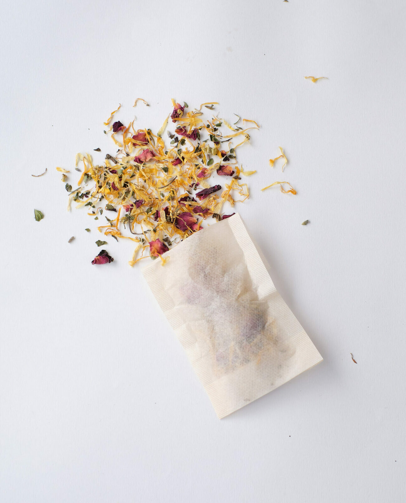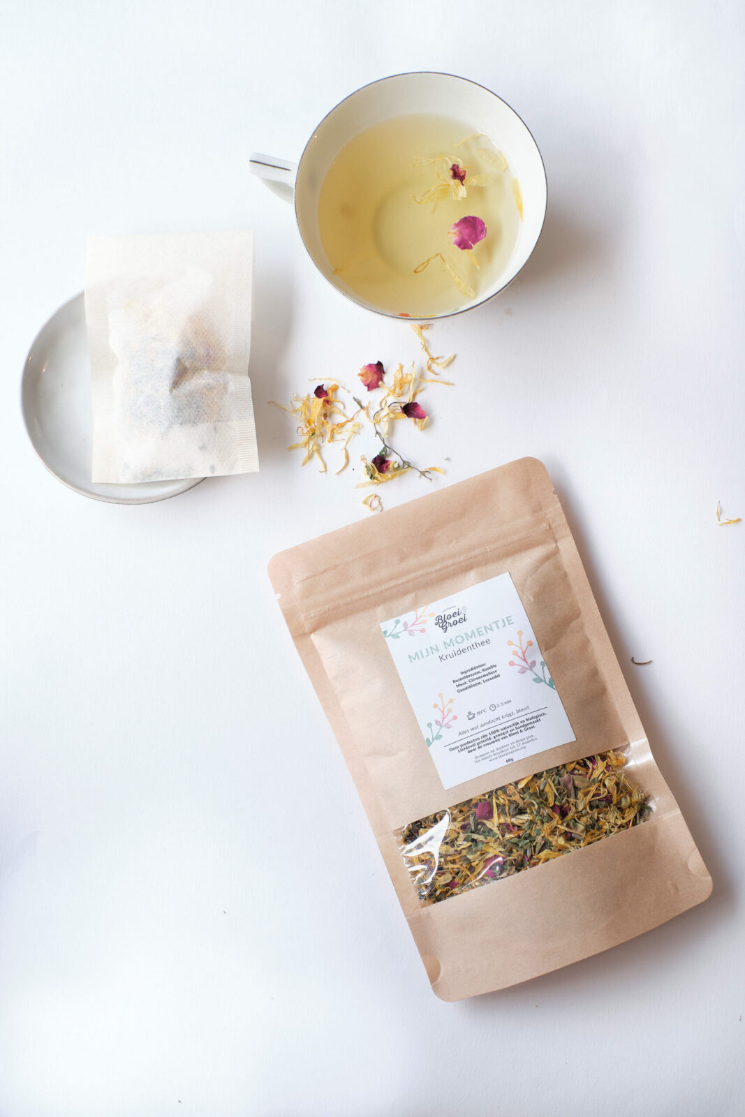 Ingrediënten: rozenblaadjes, lavendel, kamille, munt, citroenmelisse en Goudsbloem.